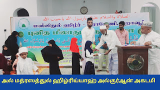 இன்று 11/10/2024 ஏறாவூர் மீராகேணி அல் மத்ரஸத்துல் ஹிழ்ரிய்யாஹ் மத்ரஸா மாணவர்களது மீலாதுன் நபி விழாவும் போட்டியில் கலந்து கொண்ட மாணவ மாணவிகளுக்கு பரிசில்கள் வழங்கும் நிகழ்வும் .